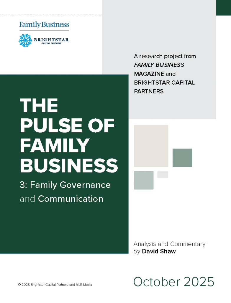 The third survey in the Pulse of Family Business series examines how family businesses structure family governance and communicate across generations. The survey highlights the wide range of approaches to councils, meetings, and policies. It reveals both meaningful progress and significant opportunities for families to formalize governance structure as ownership expands and generational complexity increases.